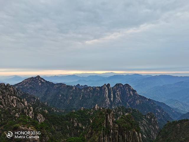 黄山,古称黟(yi)山,这个词出自《黄山图经》,也是在这本经书中记载了“黟山改名黄山”,至此黄山的名号就延用了下来。黟山的黟,就是黑比较多的意思,黄山也确实如此,远远望去,山色如黛,一点也不黄,也不知为什么就改名了,感觉还是黟山更合适。徐老有云:“五岳归来不看山,黄山归来不看岳”,古人诚不欺我!