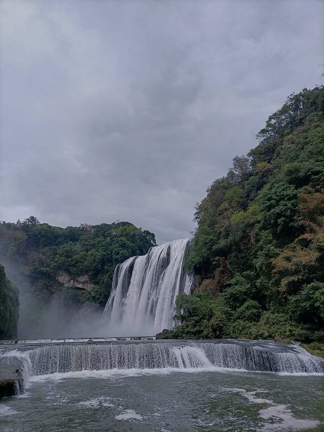 我们住在安顺市区,从安顺市区到景点车程二十多分钟,都是大路很好开。景区游客中心就可以停车,10块钱停一天。由于导航的原因把我们导到客运站对面的一个私人停车场,看起来有点破烂,虽然也是10元停一天,但有碍观瞻,哈哈。黄果树景点需要提前一天在网上预约购票,这样可以避免去现场排队,参照排队队伍网络预约简直就是VIP,很快就进入景点了。景区是刷身份证进入,人脸核验成功即可通行,疫情期间一定要配合当地防疫政策,主动出示健康码行程码。进入景区后就有旅游大巴车等候了,根据游玩线路选择乘坐不同的车。我们拟定线路是天星桥-大瀑布-陡坡塘。天星桥景区很大,全部游完大概需要3-4个小时,景区以高老庄为界分为上半段和下半段,精华景点有美人藤、高老庄、天星湖、天星洞、银坠链瀑布。总的来说值得打卡地集中在下半段,上半程沿路前行欣赏一下即可,没有惊艳的感觉。我们是家里老人同行,考虑到体力等原因,只游玩上半程。沿着高老庄半程出口路牌前行乘坐景区大巴车,步行至乘车点大概需要15-20分钟,路上大多是阶梯,上上下下的,脚力不好的游客还是谨慎选择,如果只奔着游玩天星桥上半程我个人不是很推荐,完全可以把时间节约到大瀑布和陡坡塘。天星桥半程乘车点上车可以直接前往大瀑布景区,大瀑布景区有扶梯,单程30元/人,往返50元/人。去程是下坡,返程是上坡,可以考虑走下去然后乘扶梯上来。我们初来乍到没做好攻略,选反了,坐扶梯下去然后走了上来,哈哈。乘坐扶梯大概几分钟就到坡底了,从扶梯出口到大瀑布还需步行将近15分钟。由于疫情原因游客不多,可以在大瀑布尽情拍照,瀑布气势磅礴,和旁边的山势树木相映成章,就是大自然赠与我们的最美风景画。置身在瀑布前可以感受大自然的神奇以及人力之渺小,时间不赶的话倚靠在围栏边静静聆听山水的声音不失为另一种意境。经典游玩路线是步行到水帘洞,从水帘洞下横穿大瀑布,近距离感受水雾和水声,水量大的时候记得要买一次性雨衣,鞋套的话可以不买,雨衣建议买最便宜那种就好了,3元-5元/套,也有厚点的,10-12元/套,景区门口就有卖的。陡坡塘就是西游记里师徒走过的名场面了,据说是黄果树众多瀑布中最宽的,游览时间1小时左右,由于时间关系,经典打卡地没去,所以我前面建议只想玩天星桥上半程的伙伴完全可以把时间节约到陡坡塘,当然时间充裕的小伙伴可以忽略。