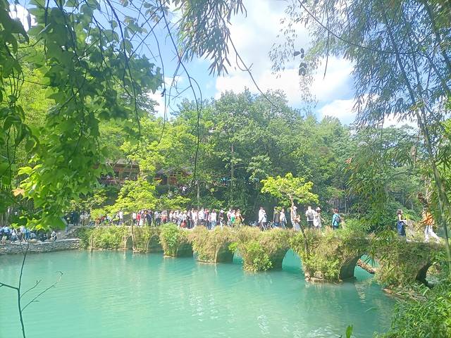 我们是头一天晚上赶到荔波小七孔,到达的时候已经10点多了,民宿老板非常热情,亲自来停车场接我们还带我们去吃饭。不得不说荔波小七孔的乡镇已经非常商业化了,景区门口的饮食街灯光辉煌显得很热闹,好在贵州的景点都在山里,山下的繁华并不会打扰山里的自然风光。心心念念贵州酸汤,晚饭我们点了酸汤鱼,特别是在坐了一天车以后喝上一碗酸汤真的是太赞了,我们4人吃了一条江团酸汤鱼,配菜点了豆腐洋芋豆芽,还有一盆青菜,没有吃主食已经很饱了,餐费大概是190元左右。民宿环境优美但卫生条件一般,建议还是住在县城酒店较好。第二天一早吃过早餐我们就直奔小七孔景点了,由于住得近步行就到景区门口了,我们去的时候景区门票免费,只需购买观光车车票,票价50元/人。小七孔真的真的真的是惊艳到我们,说是小七孔,其实景区很大,里面包含山、水、湖、潭、瀑于一体,欣赏价值很高。我们游玩路线是从东门乘坐大巴车到卧龙潭,然后一路走下去,不走回头路。具体线路是卧龙潭-鸳鸯湖-翠谷瀑布-水上森林-石上森林-小七孔古桥-乘坐观光大巴返回东门。一路行来,景色很美,碧蓝色的湖水清澈见底,曲径流水翠绿山林,行走在其间有说不出的意境和感受。如果说黄果树瀑布是磅礴的气势型选手,那么荔波小七孔就是婉约的碧玉型美女,温婉美好,一湾碧水静静流淌,一路流过碎石叠嶂,婉转曲折,终于走到古老的小七孔,化身石桥,只为等你走过。在这里,随便一拍都是天然去雕饰的美景,让人沉醉其间。向下步行的话推荐走靠山那面的石板小路,视角更好意境更美。从小七孔乘坐大巴车返程到东门,可以去大七孔景点,大小七孔是分开独立不相通的两个景点。我们选择乘坐竹筏进入大七孔景区,往返40/人,主要是泛舟湖上,沿着两岸峡谷开进的感觉,会让人身临其中沉浸式观赏峡谷和流水。竹筏单程大概10分钟就到了,然后要顺着栈道步行至天生桥、恐怖峡、妖风洞等景点。小七孔看水,大七孔看山,主要是高山峡谷风貌,由于体力和时间原因我们仅步行至天生桥便返回了,其他的景点未观赏留待其他小伙伴补充。另外爱吃枇杷的小伙伴一定很快乐,荔波盛产枇杷,5-8元一斤,个头非常大,皮薄汁多,非常推荐。