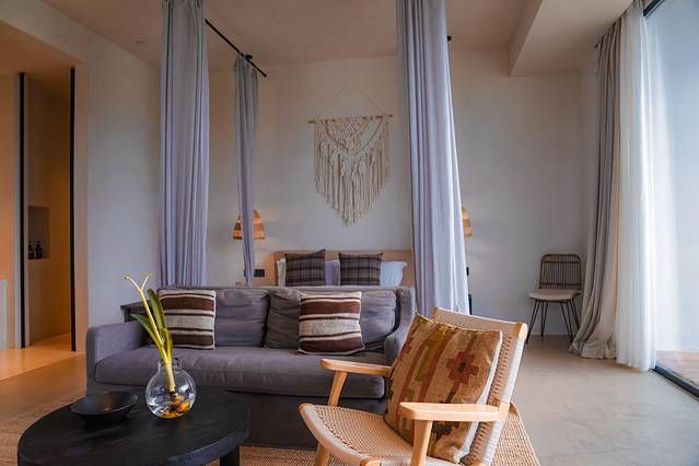 房间内大量运用了亚麻色和原木色的设计,被子带着太阳晒后令人安心的味道。一走进去,扑面而来一种暖洋洋的舒适感。