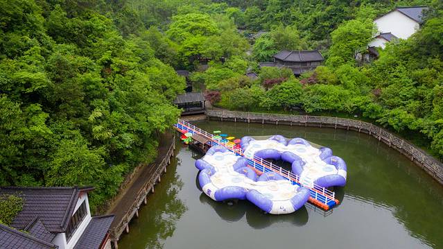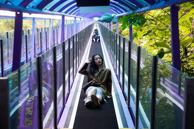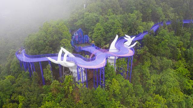 天子地内最好玩的要数紫龙峡高空玻璃漂流了,它是目前是世界纪录认证最长的一条高空玻璃漂流。高空高速滑行,360度回环,都是你控制不住尖叫的缘由。