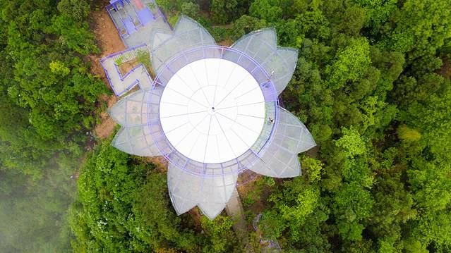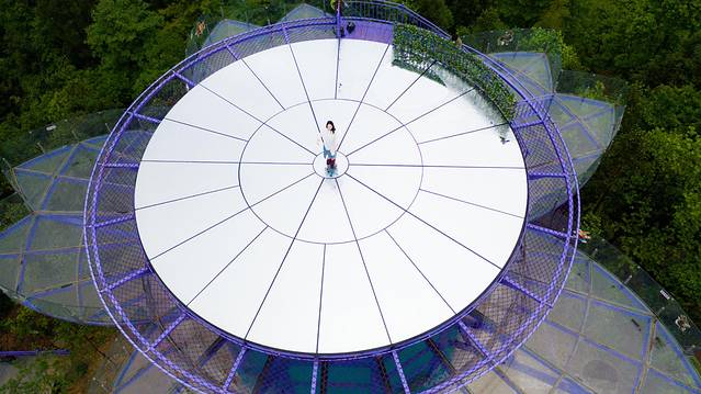 紫荆花悬崖玻璃眺台是天子地 新建 的网红设施,如莲花般的观景台立于天地之间,脚下是万丈悬崖,身下是峰峦叠嶂,踏在透明的玻璃上,整个身体悬停在半空中。远眺是诗画山水,亲近是清新自然。