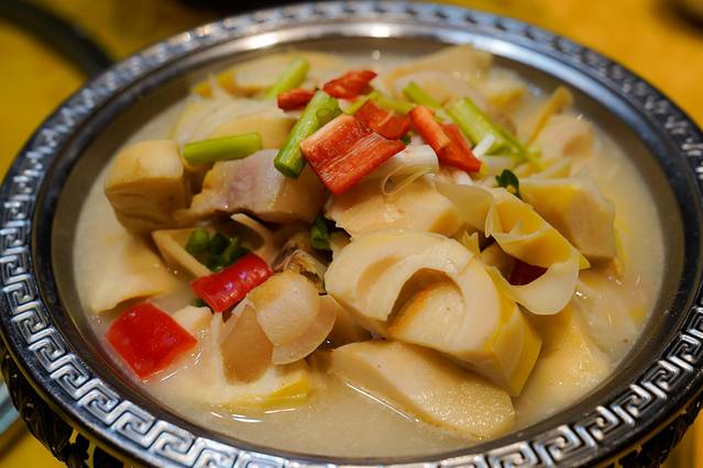 农家乐主要是农家菜,菜品外观与城市的餐厅没法比,但是味道确实是地道农家风味,神仙鸡、红烧肉、油爆虾、清蒸鱼、野笋、三鲜豆瓣、椒盐船丁鱼、素菜汤、清炒莴笋、蒜薹腊肉、干锅花菜、盐卤豆腐......每一道菜都是舌尖上的美味。