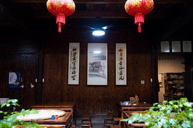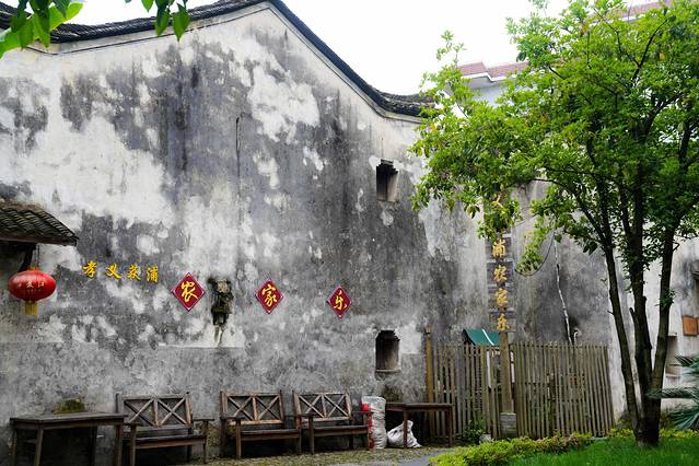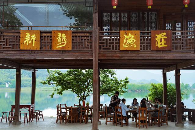 午餐选择在狄浦花海附近的 孝义 荻浦农家乐,老板人很热情,店里的生意火爆,都是慕名而来。餐馆是老房子改建装修而成,白墙灰瓦的徽派建筑,里面大多是木质结构,桌椅板凳窗户充满历史感。
