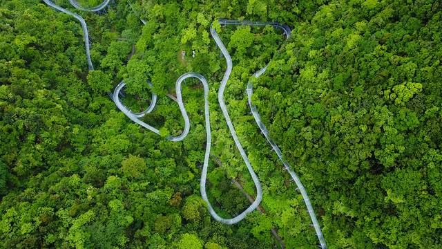 天子地群山吐翠,空气清新,漫步于网红栈道“紫绫纤手”,如诗如画的美景,使人心胸开阔,登山的疲一扫而空。