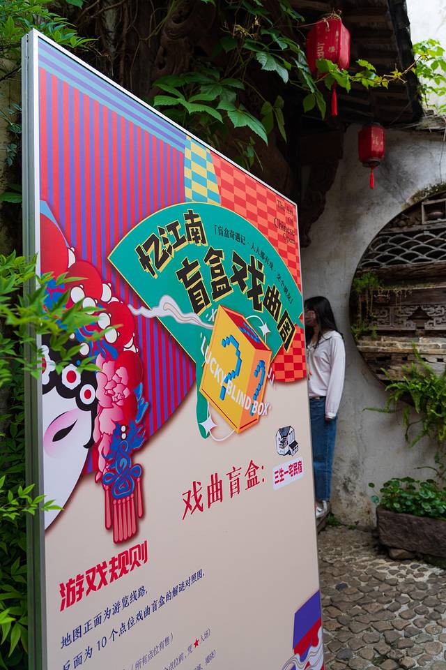 “忆 江南 •盲盒戏 曲周 ”以 江南 古村落为沉浸式体验场景,把一幢幢古建筑当做一个盲盒,圈起来的建筑都是戏曲盲盒,加入 桐庐 越剧文化,游客可以购买戏曲盲盒,根据地图导向,逐一解锁各个盲盒,有机会拿2888文旅大奖。