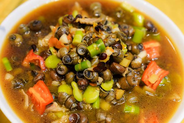 生炒鸡、土猪肉、河虾、红烧溪鱼、生粉圆子、青菜响铃、火腿青椒、小炒土豆、蚕豆、螺丝、小笋、蒸臭豆腐......地道农家做法,食的是最真的味道。