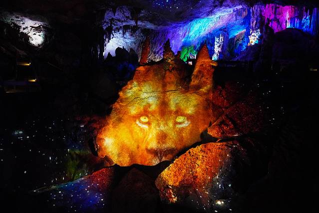 瑶琳仙境共分七个洞厅。进洞,穿过荧光长廊,首先进入了前厅。前厅不大,但秀丽温婉,颇似 江南 水乡。后面是大型的“狮象迎宾”裸眼光影3D秀,在偌大的地底世界用科技技术把瑶琳仙境万年的演变过程投影在巨石之上,格外的震撼。