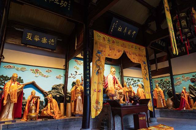 桐君祠内有一组长25米,高4.2米、宽1.4米的彩色历代名医群体全身塑像,将桐君老人推崇为 中国 古代医药学的始祖,春秋战国时期的扁鹊、东汉张仲景、三国华陀、东晋葛洪、唐代孙思邈、宋代王维一、明代李时珍、清代王清任等历代先贤医圣济济一堂。