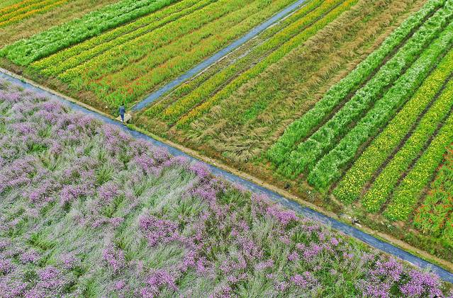 进入荻浦花海,各色的花朵争奇斗艳,如梦如幻地铺开,绵延好几公里,在诗画般的田园里,感受花海的独特韵味,随便一拍,都是大片的即视感。