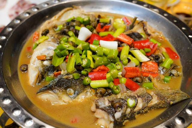 午餐选择了一家靠近江边的农家菜——新龍渔庄,听说在当地小有名气,环境非常的不错,江面上时长看到有人在撑着竹筏来往,渔货的食材想想都觉得新鲜味美。