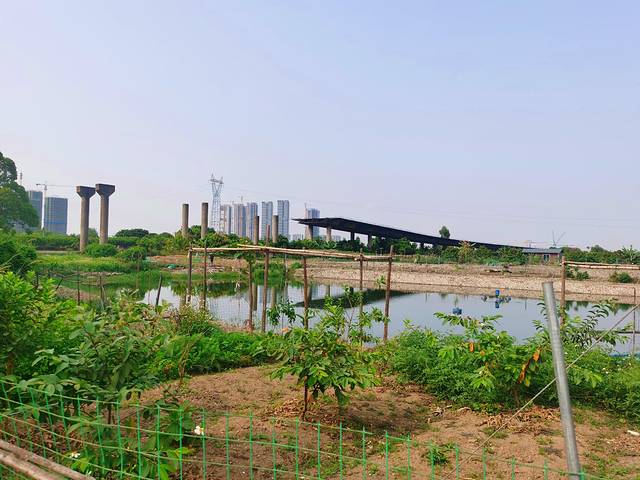 穿过村子,来到大汕岛的腹地,这里有大片的土地,种着各种蔬菜和农作物。因为位于江心,村中有纵横交错的河涌,用水的问题是不用担心的,这里甚至还修有鱼塘。