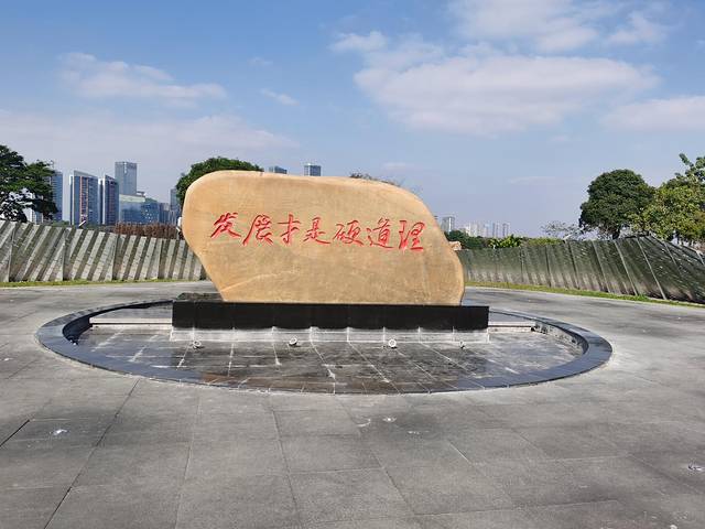 在 顺德 发展馆的前面,新立了一块巨型的黄腊石,上面刻着七个红色大字:“发展才是硬道理”,这句话大家都很熟悉,是小平同志的名言。这几个字看似普通,但却如定海神针一般,坚定了人们的信心。