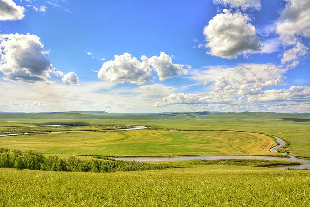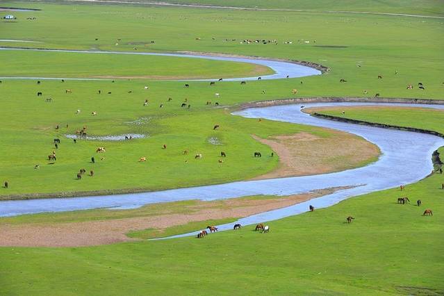老舍先生笔下的莫日格勒河更是像一只盘旋在草原上的一条巨龙,在草原上尽情的展现着自己的妩媚身姿。河面并不宽阔,但是却极其弯曲,一会向南,一会向北,一会东行,一会西奔。难怪老舍先生用九曲十八弯来形容他。身临其境感觉词穷了就是感叹哇······哇‘’‘······