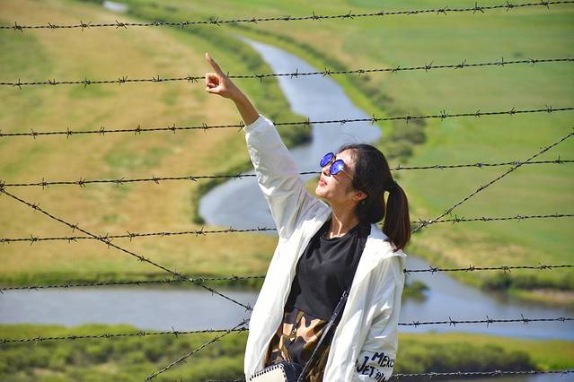 在公路七卡附近的山头,可以看到一幅太极八卦图, 额尔古纳 河流经的走向刚好形成了太极八卦图的形状,中间就用草原来填充,是不是很神奇。此处如果可以航拍就完美了,然而这里是边境新无人机飞不了,旁边的铁栅栏上还标着,非法过江魂断他乡。