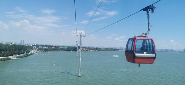 依傍着滇池的碧水,西山自被衬托的格外清秀。坐着缆车俯瞰脚下的一池碧波,自是心旷神怡,尤其是当缆车越过浩渺的滇池,徐徐减速似要停下却忽又加速向山顶爬去时,真的让人喜出望外,成了一趟名副其实的“山水之行”。山并不高,山上绿树荫荫,音乐家聂耳就长眠于此。在山中走走停停,用尽可能慢的步子在林间徘徊,让放空的大脑捕捉每一次鸟鸣。接近日落时分不能登上罗汉山去体会云蒸霞蔚的滇池日出,也错过了望海楼和凭栏远眺的龙门胜景,只待未知的某年某月再了心愿吧。在山上停留不多时,因担心下山步行的路程太远而选择了景区大巴,着实留下了几分的遗憾。下山又逢美食一条街,而我早在景区随意选择了一家米线,以至于此次行程中一直念念不忘的还是第一次到昆明时尝过的那家菊花状元米线。