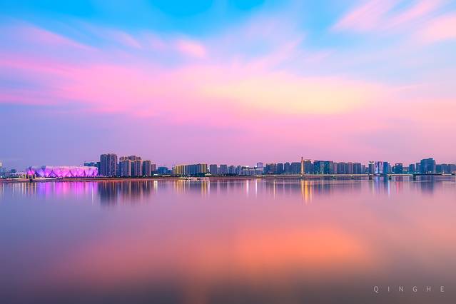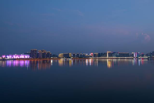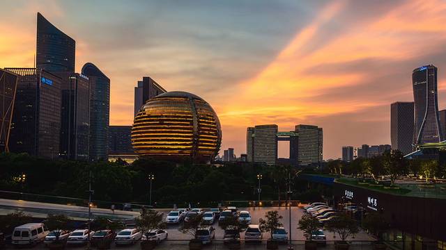 冒着夏日狂热的风也要来看看灯光秀,在傍晚的时候看云朵烧红钱塘江天空,等待夜幕降临看