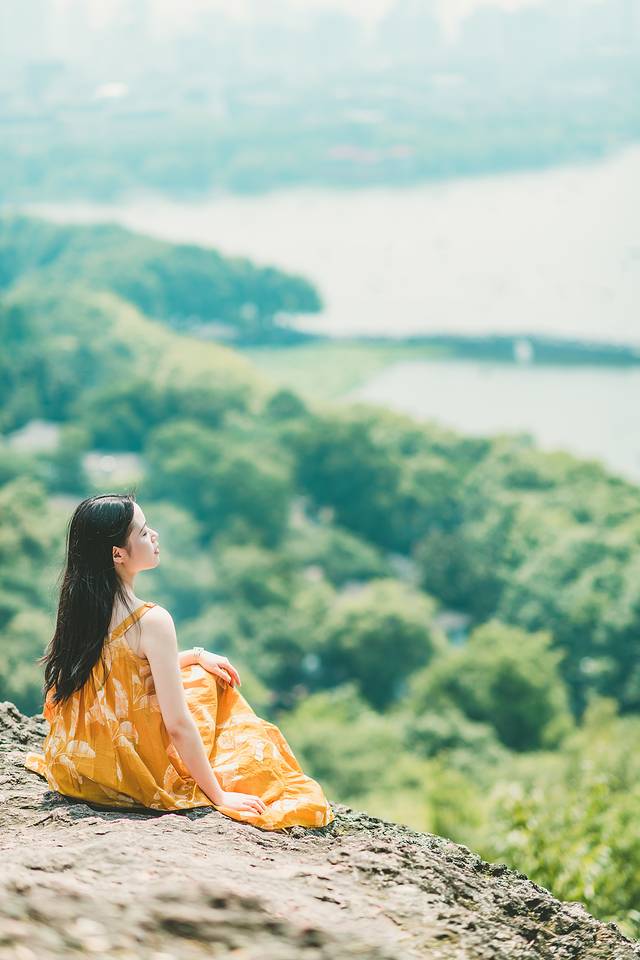 从太子湾上去,可以说是很小众的一个地方。九曜山的九曜阁可以俯瞰西湖全景,比宝石山视野更为开阔,而且还可以眺望钱塘江,风景极美