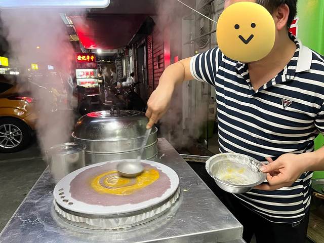 来柳州的这几天,我们发现这里的饮食与广东有不少源远流长的故事。比如卷粉是广东西关地区的小吃,很像广东的那种没有内馅的猪肠粉。它的制作过程像煎饼果子那样,先把米浆摊开,30s左右待米浆蒸熟,打上鸡蛋和我们点的黑米摊匀。全部卷起前,再刷上一层肉沫,就准备出锅了。