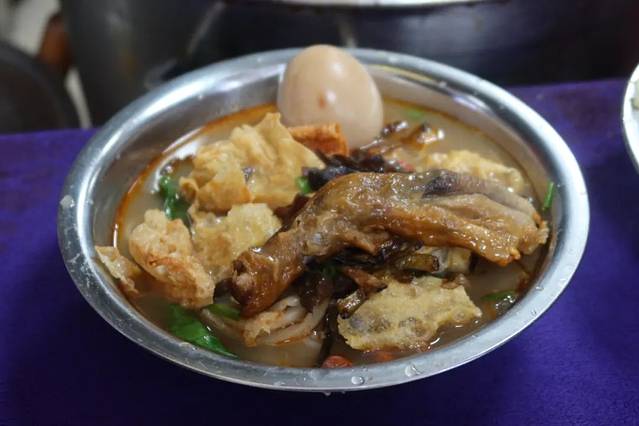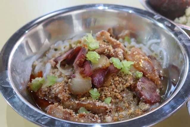 在这家滤粉店,你可以选择单加一样,或者选择花4块钱样样都来点儿。作为外省客,自然是选择了后者,再加个烧遮,出品看起来相当豪华。粉吃着还挺清爽的,汤汁喝着也不口干,值得一试。