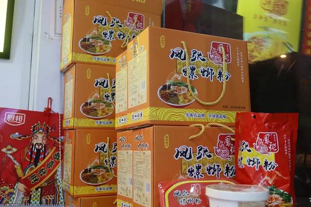 嗦粉真是件快乐的事儿,QQ弹弹。每份螺蛳粉料超多,有青菜、木耳、花生、腐竹、酸笋、酸豆角、花生米等,花生米真是绝了,又脆又香!门口还有成箱的螺蛳粉,可以直接快递回乡。