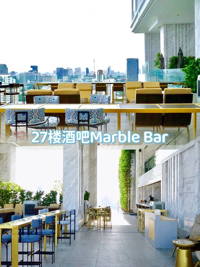 而若想临高揽胜,实时感受曼谷城景,去户外区Marble Bar用餐亦是绝佳选择。如其名所示,大理石主打的bar区,黄昏时分是其最佳观景时段,一边品尝香槟鸡尾酒,一边欣赏日落直至华灯初上。