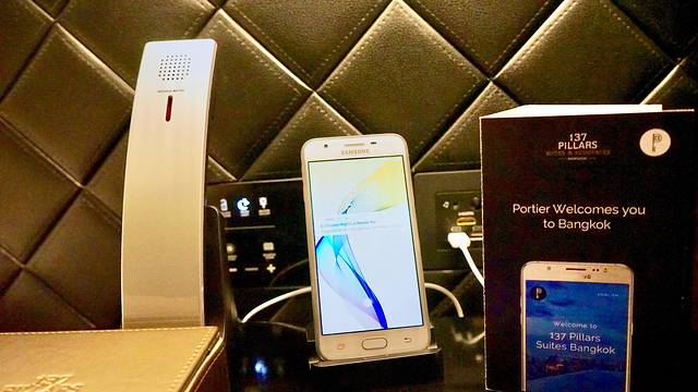 而酒店客房床头柜上方便住客随身携带的智能手机,使客人不论在酒店内外都能随时与管家直接联系。