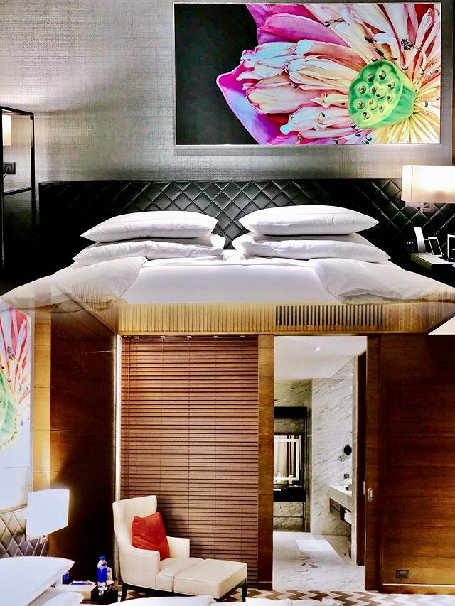 客房采用全液晶触控面板“一屏智控”的套房,装饰格调、配备品质家私的奢华客厅,妆点艺术家定制款佛国禅意范儿莲花壁画的恬逸卧室,超大步入式衣帽间,干湿分离带智能马桶、圆形大浴缸和嵌入式电视的多模式声光氛围型浴室,配备舒适摇椅及沙发床的宽敞露台...越亲密接触,越觉进入一个信息量巨大的世界。