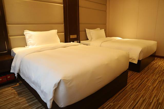 锵锵锵,终于到酒店房间啦,由于是和同事一起来出差的,我们订了双床房,房间还是蛮大的,整个房间走的都是商务风,但是暖黄的灯光又衬托的房间氛围很温馨