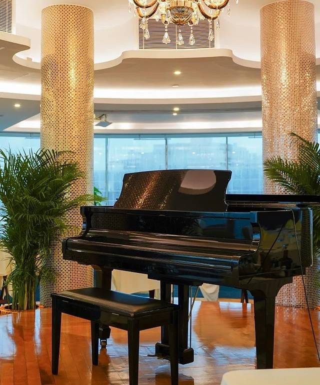 大厅中间有一部三角钢琴坐阵,客人还可上台即席表演,不少值得纪念的时刻都在这浪漫氛围下发生。