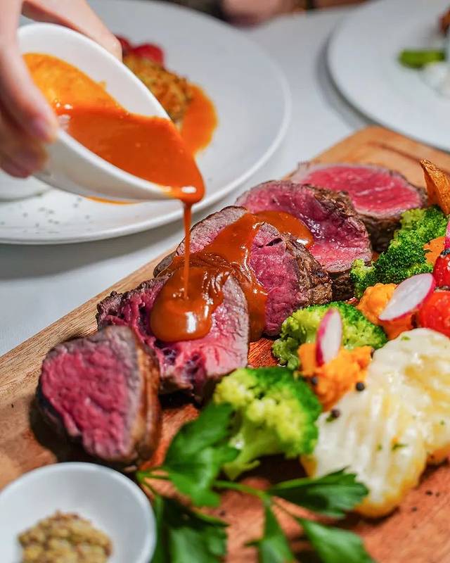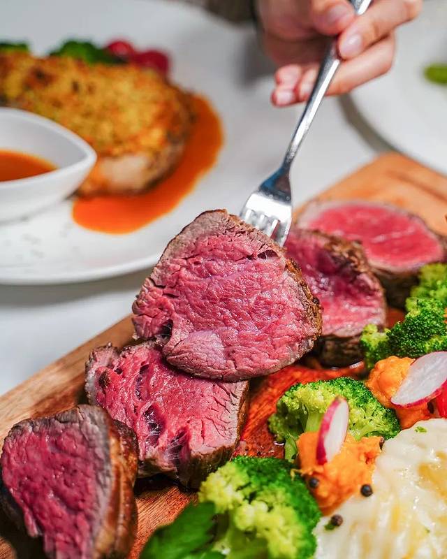 如果想吃肉质较软嫩的牛扒,这款性价比超高的特选七打牛柳值得推荐。大厨建议点5至7成的熟度,这样可以享用到肉质最鲜嫩的口感,而且配搭了不少蔬菜,份量足够3至4人享用。