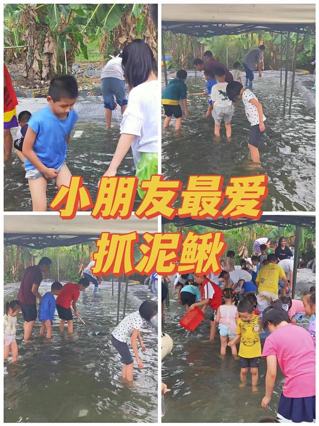 下午农场的水池里游满了泥鳅,没错又到了小朋友最爱的抓泥鳅环节,抓到的泥鳅都可以带走,看哪个小朋友抓的最多,奖励大鸡腿嘿嘿。