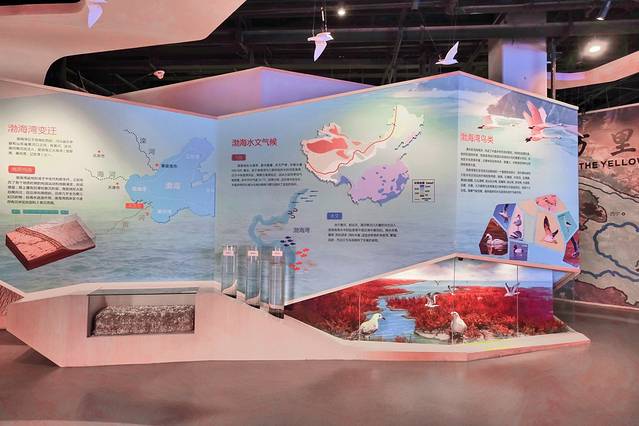 在这里,我们能直观清晰的了解黄河,它发源于巴颜克拉山,流经九个省区,一路穿峡越谷,在东营市注入渤海,完成了它的浩荡征程。