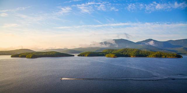 走进这里,宜人的湖光山色让人心情非常放松。坐船览湖大概一个多小时,蓝天白云下的航行,真的像走进童话故事里。