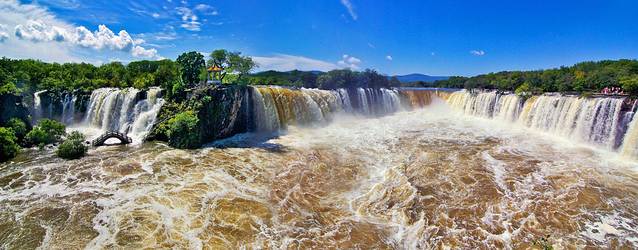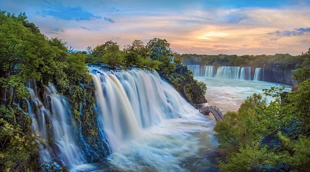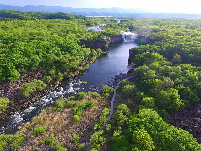 吊水楼瀑布:瀑布幅宽40多米落差为12米;湖水在熔岩床面翻滚、咆哮,如千军万马之势向深潭冲来,然后从断岩峭壁之上飞泻直下,非常壮观;如遇雨季,能看到瀑布呈现两股或数股迭落,总幅宽达二百余米,又有牡丹江的“尼亚加拉瀑布”之称。