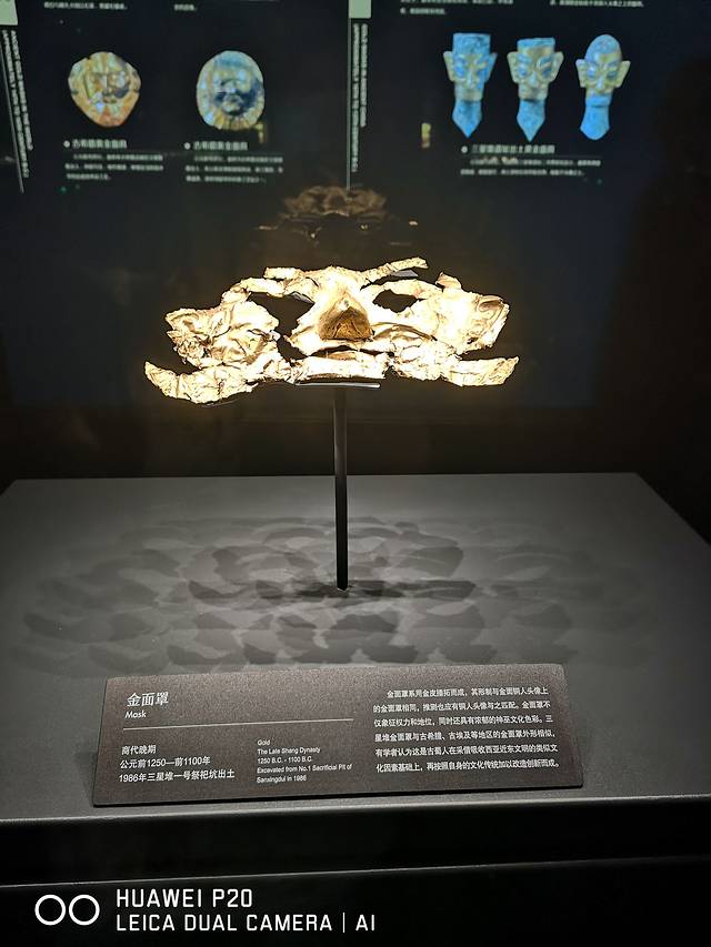 二号馆主要展示的是青铜制品,一共3层,一层是面具,这个就是电视机看到的那个老大的面具