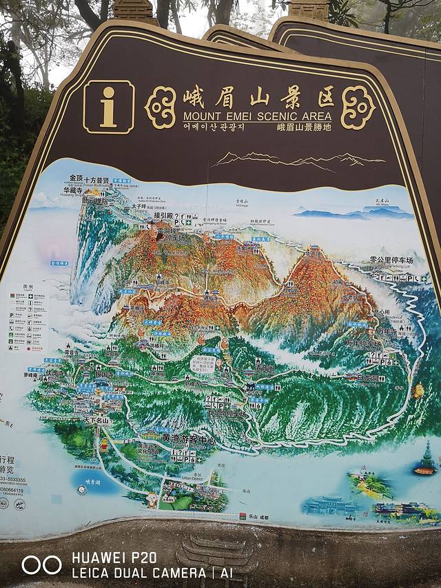 这是峨眉山风景区游览地图,我们只有一天时间,所以选了直接到金顶的路线。坐大巴车在雷洞坪下,步行20分钟到引殿坐缆车上金顶
