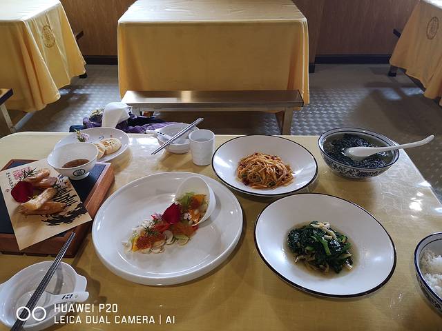 在金顶大概玩了1个小时,中午在旁边的养怡山房吃得宿餐,这是寺庙开得,不以盈利为目的,每人68元,菜品不仅漂亮而且真的很好吃,这是给我们2个人的量,不够的话可以免费再加,我们两个人刚刚好