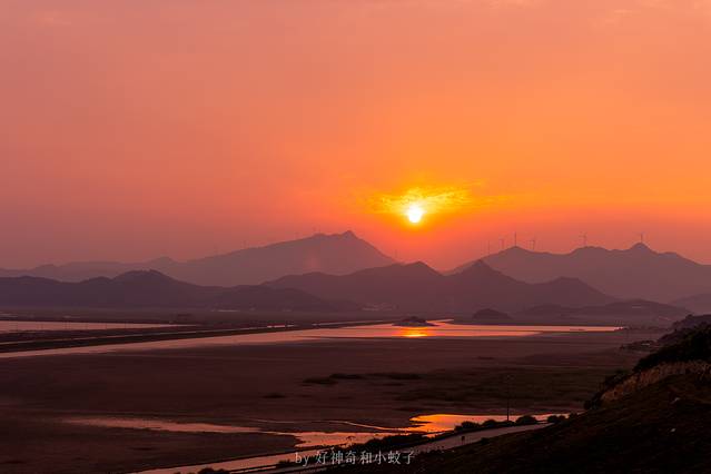 道人山的海岸线很美,公路隔开了大海和远山,一面是海浪拍打着礁石,一面是青山连绵上的风车线。这里也取代了东钱湖成为了新人婚纱摄影的最佳背景。