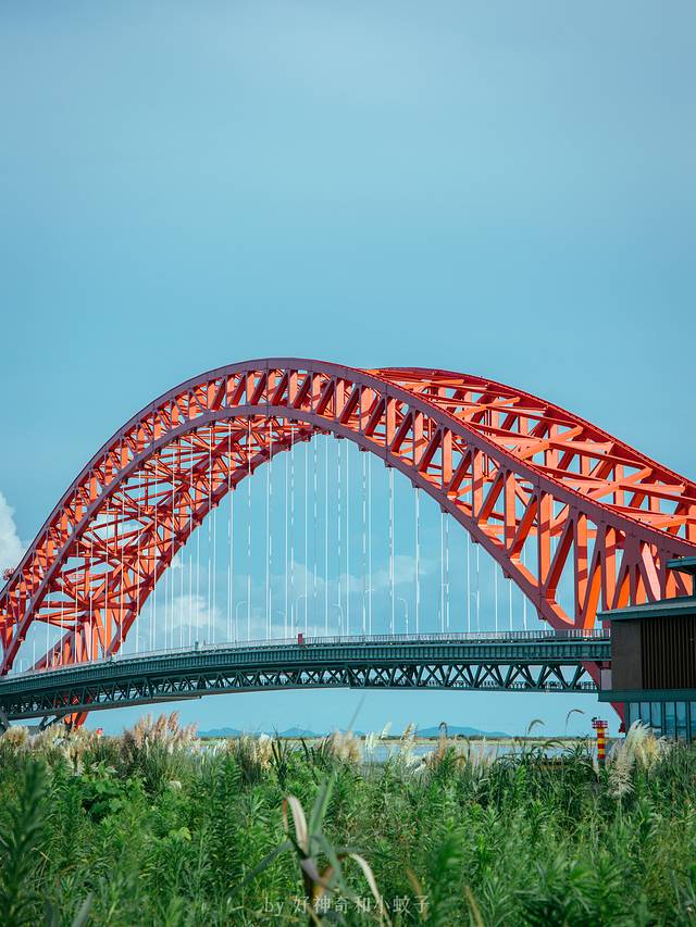 梅山湾有人工沙滩,但是破圈的却是一座红桥,我想宁波应该没有哪个年轻人没来红桥下打过卡吧。