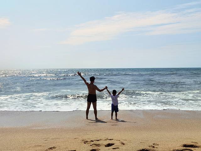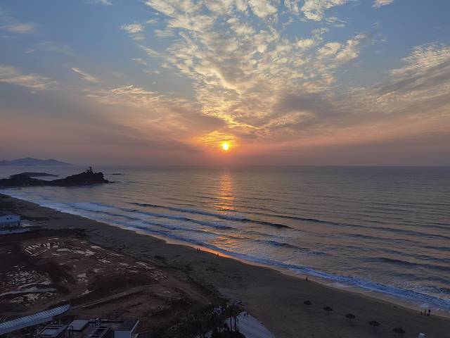 这个酒店面向西边,本来打算赶在日落前到这里观看日落,可惜天公不作美,今天阴天,看不到日落,非常可惜。于是我们便下楼到海边游玩(此处省略一千字)。