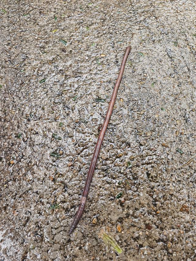 在路上看到一条过马路的蚯蚓,是我见过最长的蚯蚓。