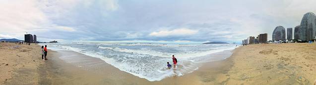 我们今晚搬到双月湾三期的一个公寓酒店,这个酒店比较新,比昨晚那个大,也是无敌大海景,不同的是这个海是在东边的,看的是东海岸(昨晚那个是向西的),明天早上躺在床上拉开窗帘就可以看日出。