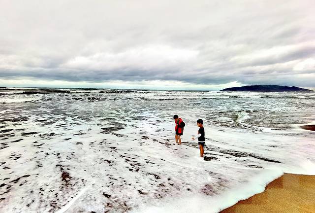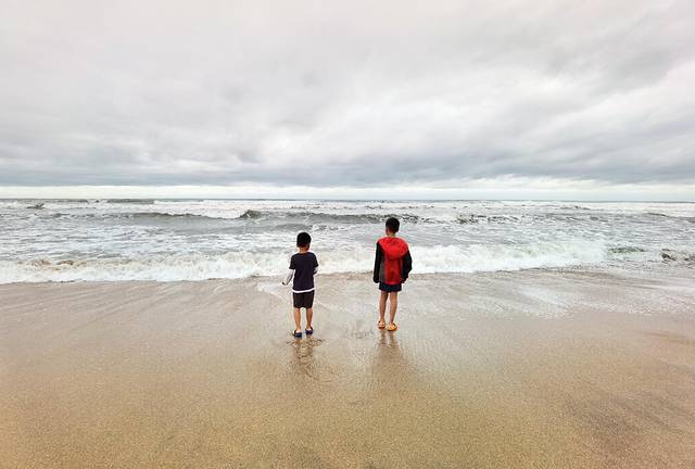 虽然不准下海,但小孩子在岸边和大海玩游戏还是挺开心的。