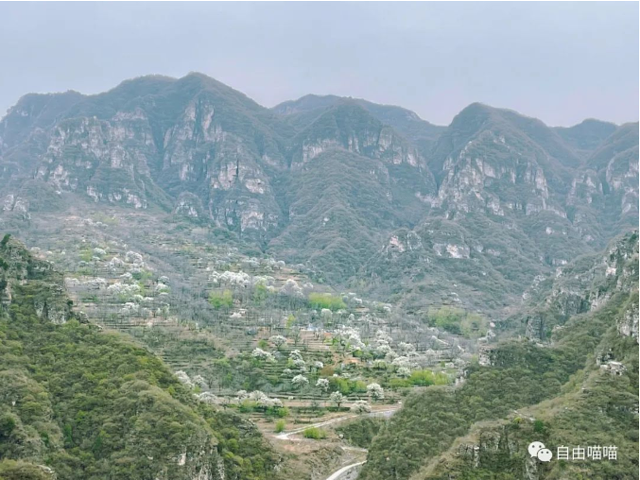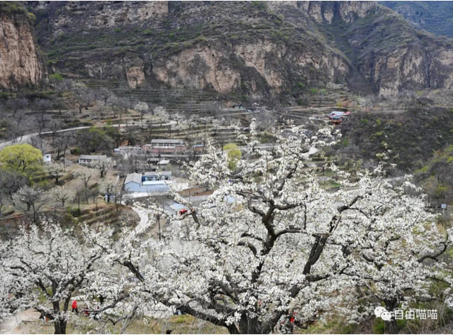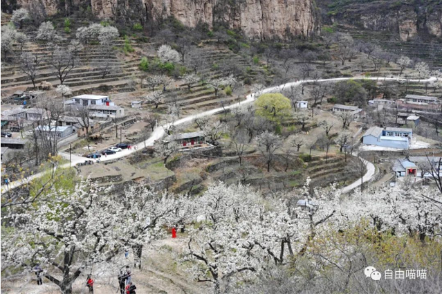 对面是另外一个村子杏黄村,也是有成片的梯田梨花
