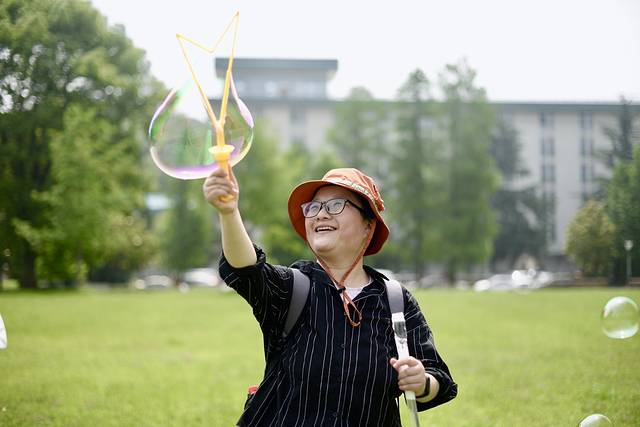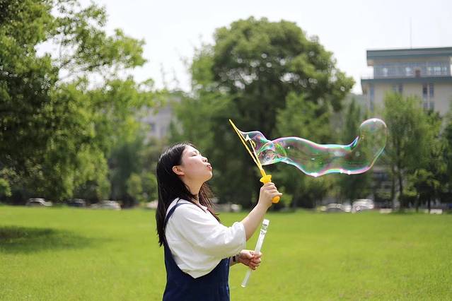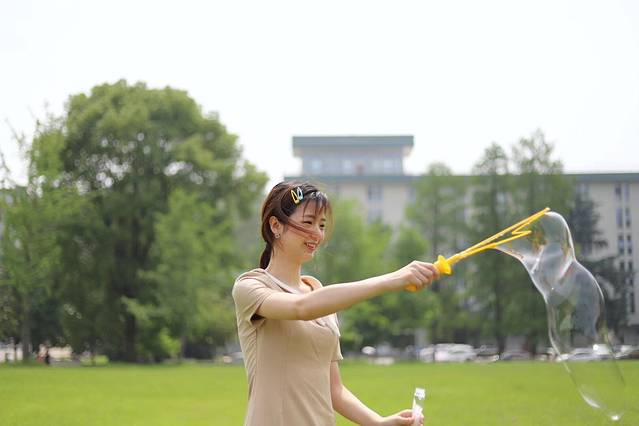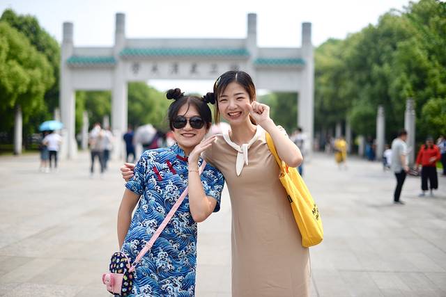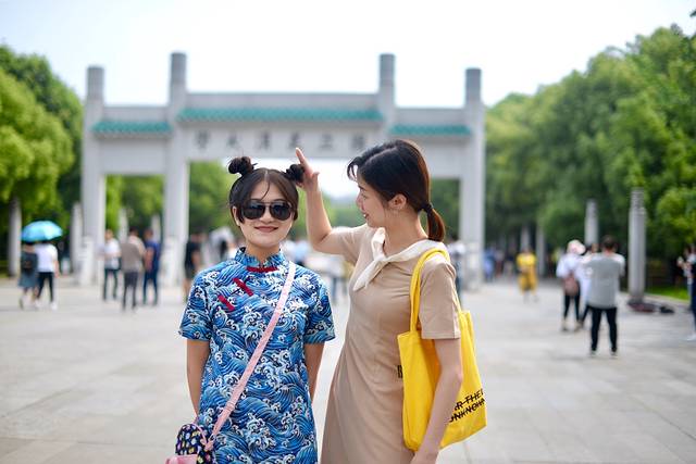 武大正门就很漂亮,还没往里走,我们便迷失在了拍拍拍不停的喜悦中。恰好樱花季已经过了,路上来来往往的行人不算太多,光圈开大点,你就是主角: