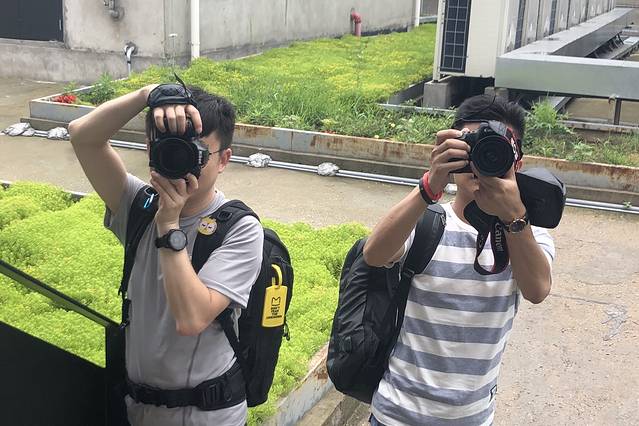 育才路这里有条林荫道,两旁的水杉郁郁葱葱,遮住了刺眼阳光也给我们自由拍照提供了很棒的机位。