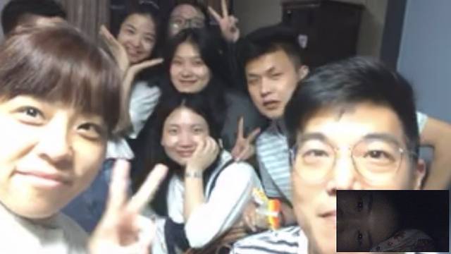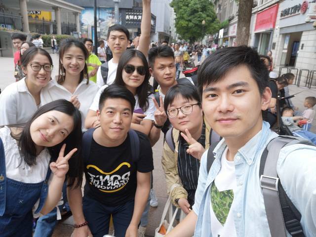 饭还没吃完,就有朋友已经前往赶去火车站的路上了。剩下的朋友们在走去地铁站的路上,拍了一张合影。