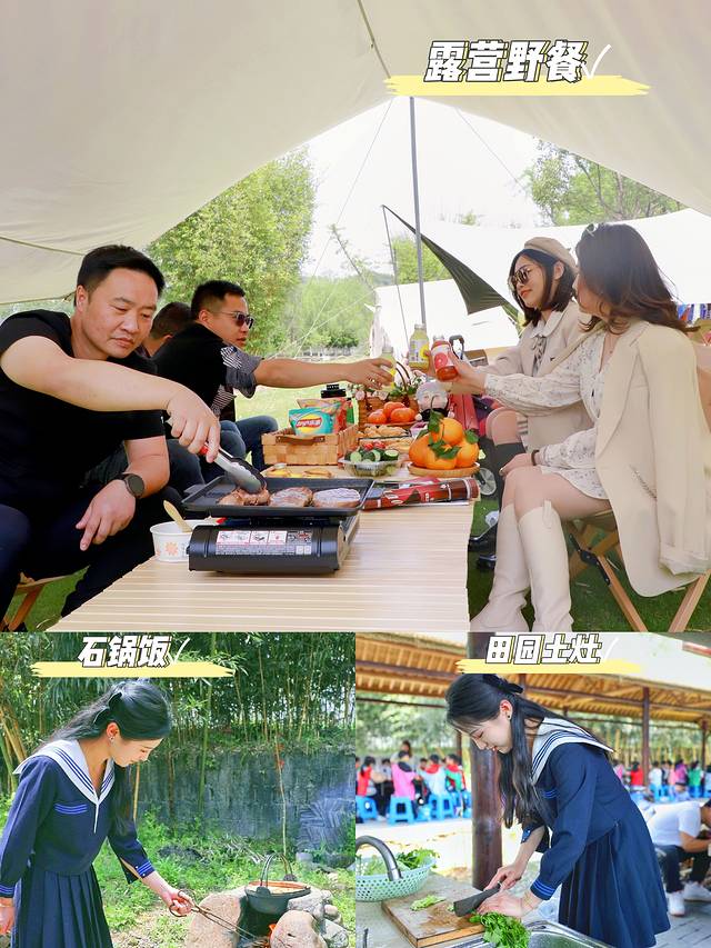 高空项目UFO还能体验💫星河漂流、蹦极、高空秋千,超刺激的。中午可以在园内做石锅饭/土灶饭🍲或者园内也有一片草坪可以露营烧烤🍖🍾。