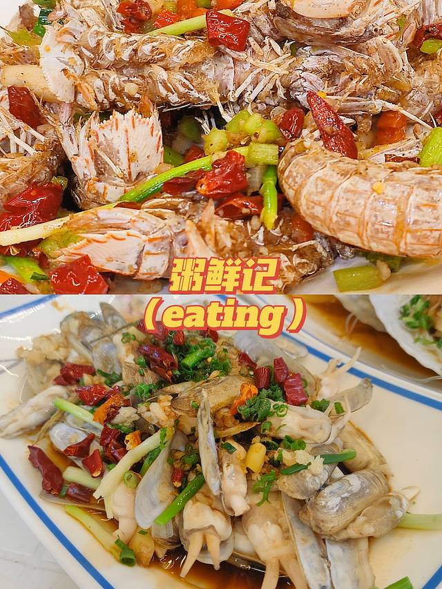 粥鲜记--安吉难道味道好的平价海鲜🦐大排档,某团套餐划算人均100不到,晚上5点后开门营业到半夜,位置在安吉转椅市场附近。